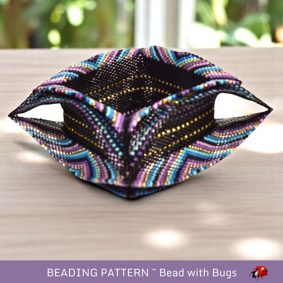 Introducing a stunning Bead with Bugs pattern, showcasing the captivating 3D beading design. This square bangle will surely catch everyone's attention with its intricate layered wings. The finished inner circumference measures 8 inches while being slightly under 1.75 wide. This unique piece is sure to be a conversation starter wherever you go. Embrace your love for unique fashion with this one-of-a-kind bracelet that seamlessly blends style and colour.