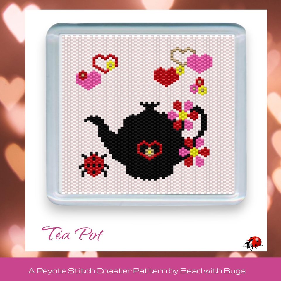 VALENTINE TEA POT: Peyote Stitch Beaded Coaster Pattern by Bead with Bugs